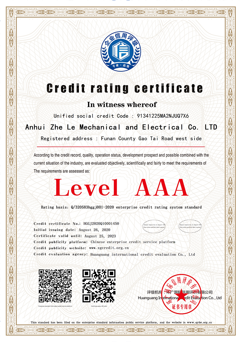 AAA级信用等级证书